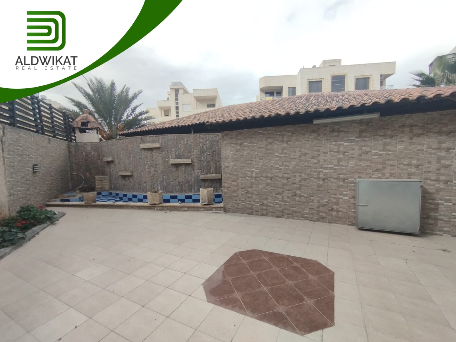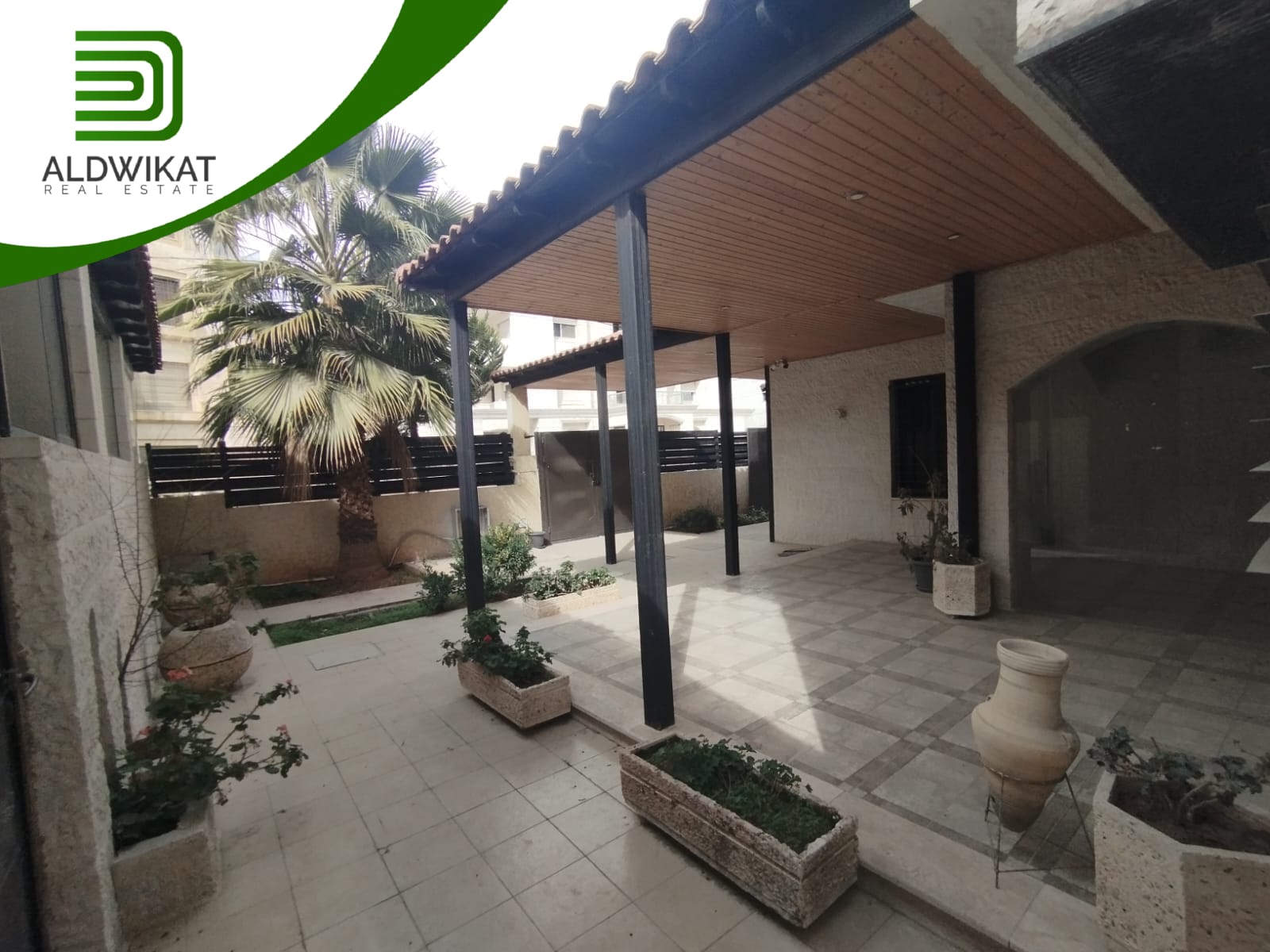 مساحة الارض 900م مساحة البناء 1200م مساحة الحديقة 500م ومساحة الترس 100م