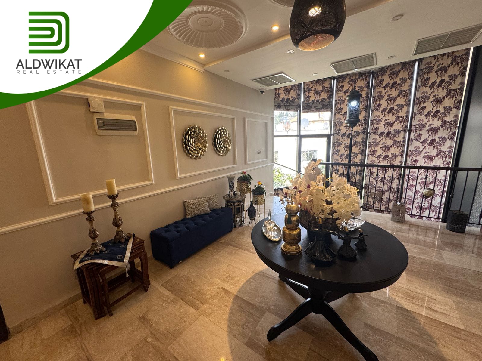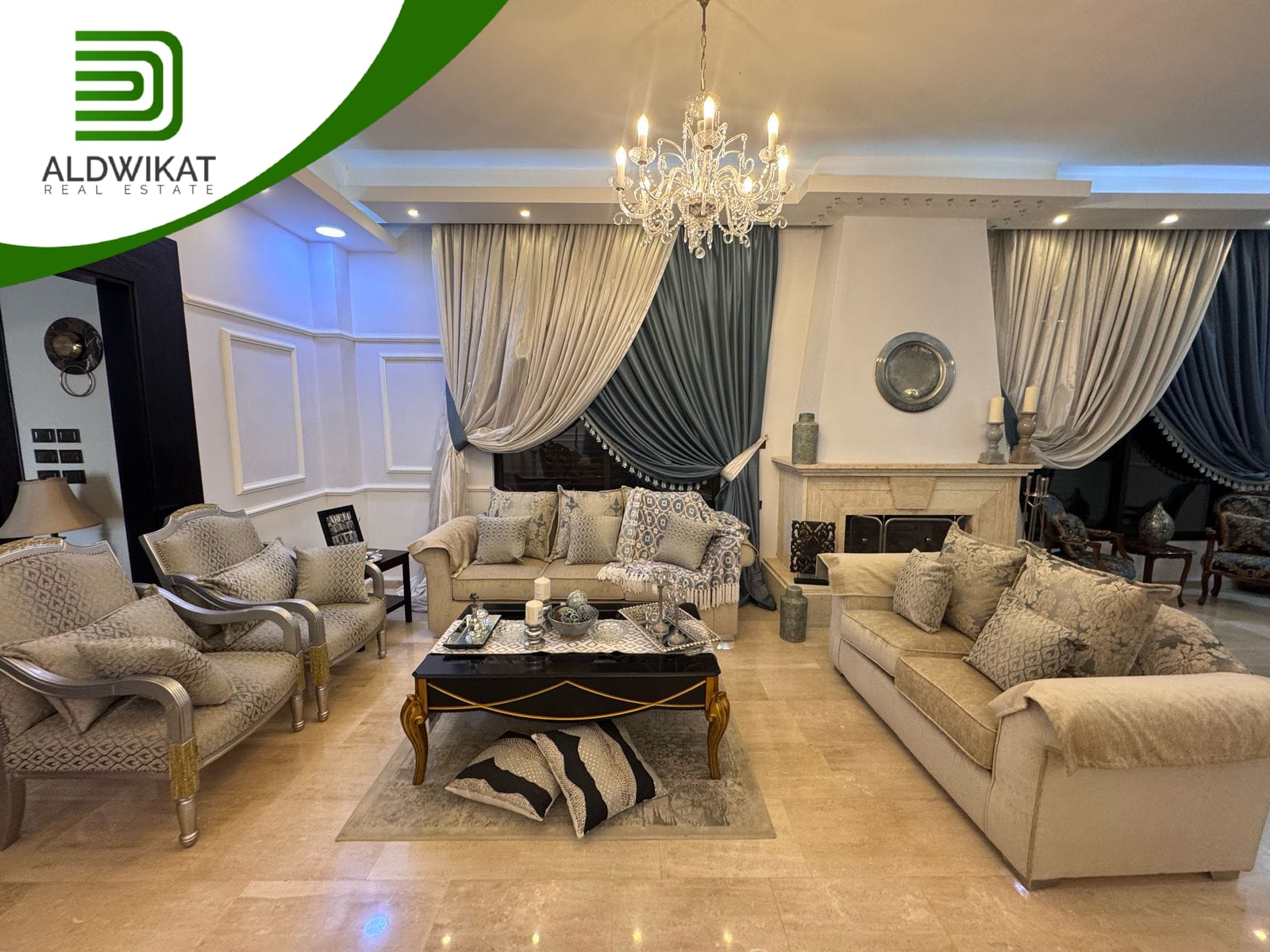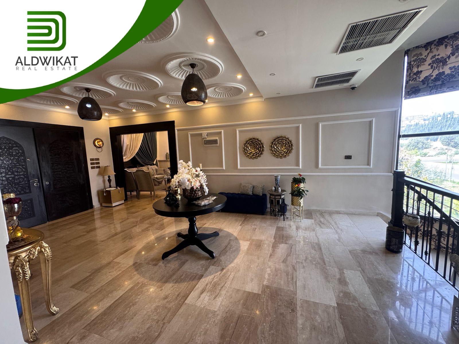 التشطيبات سوبر ديلوكس - نوع الارضيات بورسلان + ارخام - تدفئة تحت البلاط - تكييف مركزي - حديقة - تاسيس مصعد - موقد - اطلالة