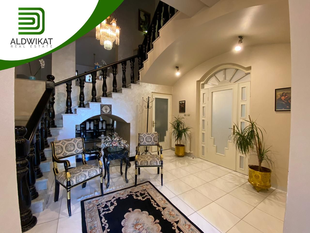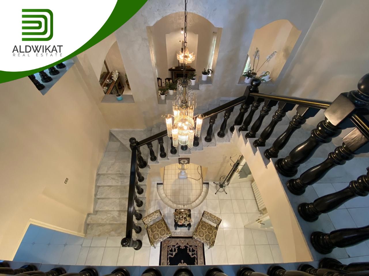 <p>Super deluxe finishes - central heating - luxurious modern decorations - marble and porcelain floors - blinds - hanging bathrooms - view - distinctive area - spotlight - chandeliers lighting - jacuzzi - fireplace - water well - decorative trees - intercom - 3 entrances .</p>