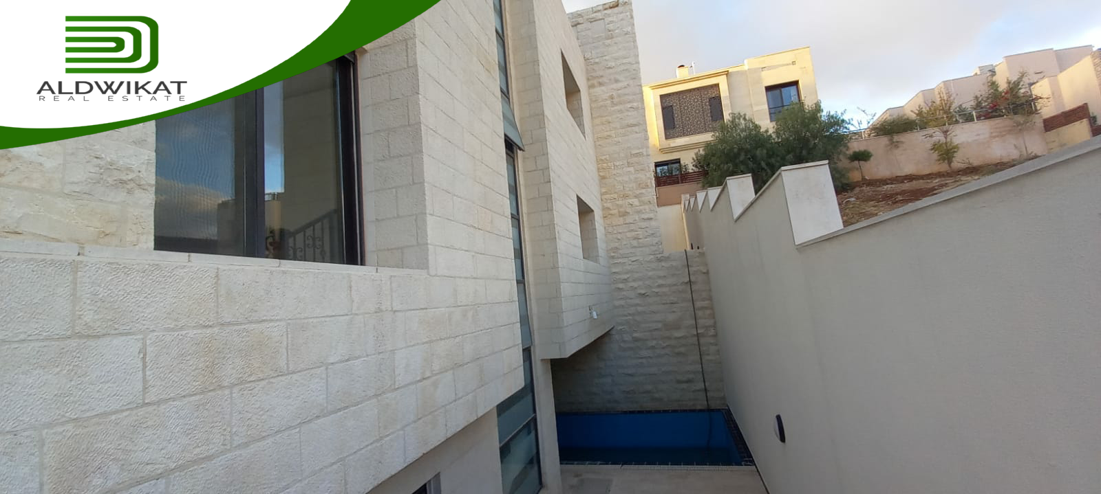 <p>Super deluxe finishes - private construction - marble and porcelain floors - central heating under floor - air conditioning installation - gypsum decorations - electric shutters - spotlight and hidden spotlights - wall cabinets - hanging bathrooms - shower boxes - safety doors - high view - swimming pool - Water well - Elevator - very nice area - 2 entrances - Double glass - Security and protection system - Motion sensors - Surveillance cameras - On two streets - very nice location - Brand New .</p>