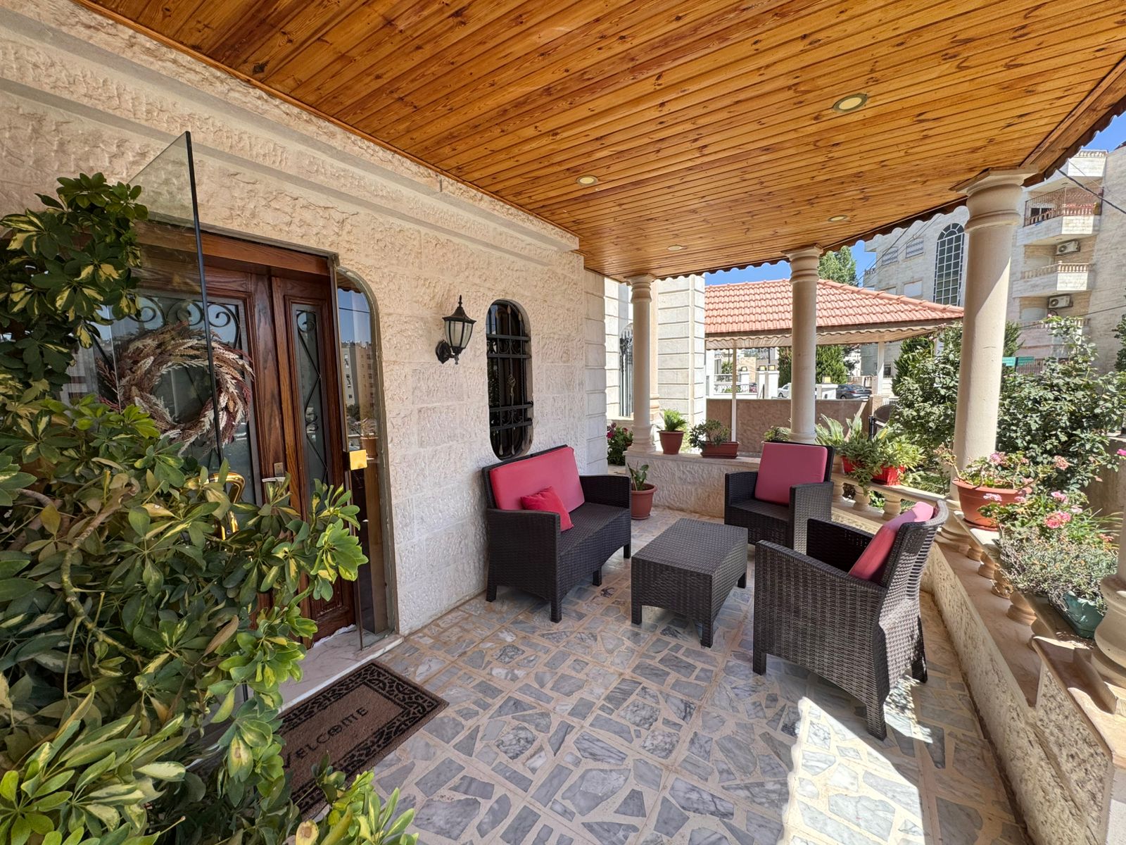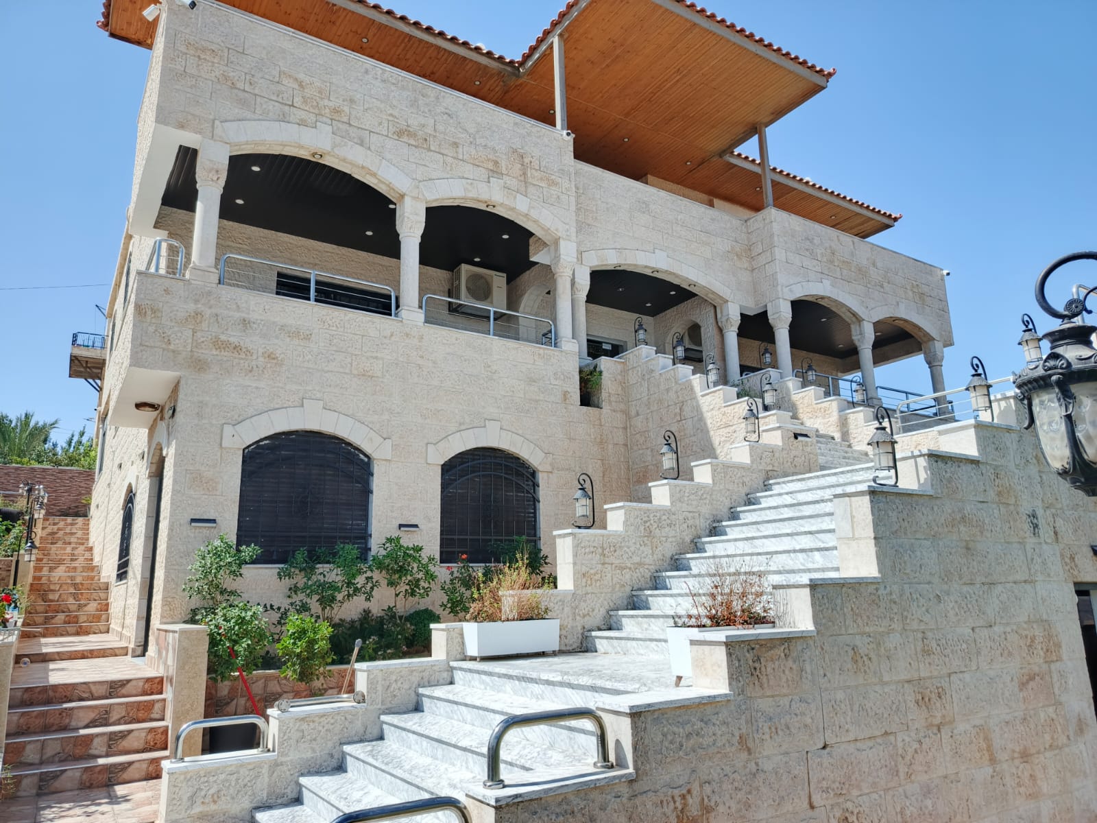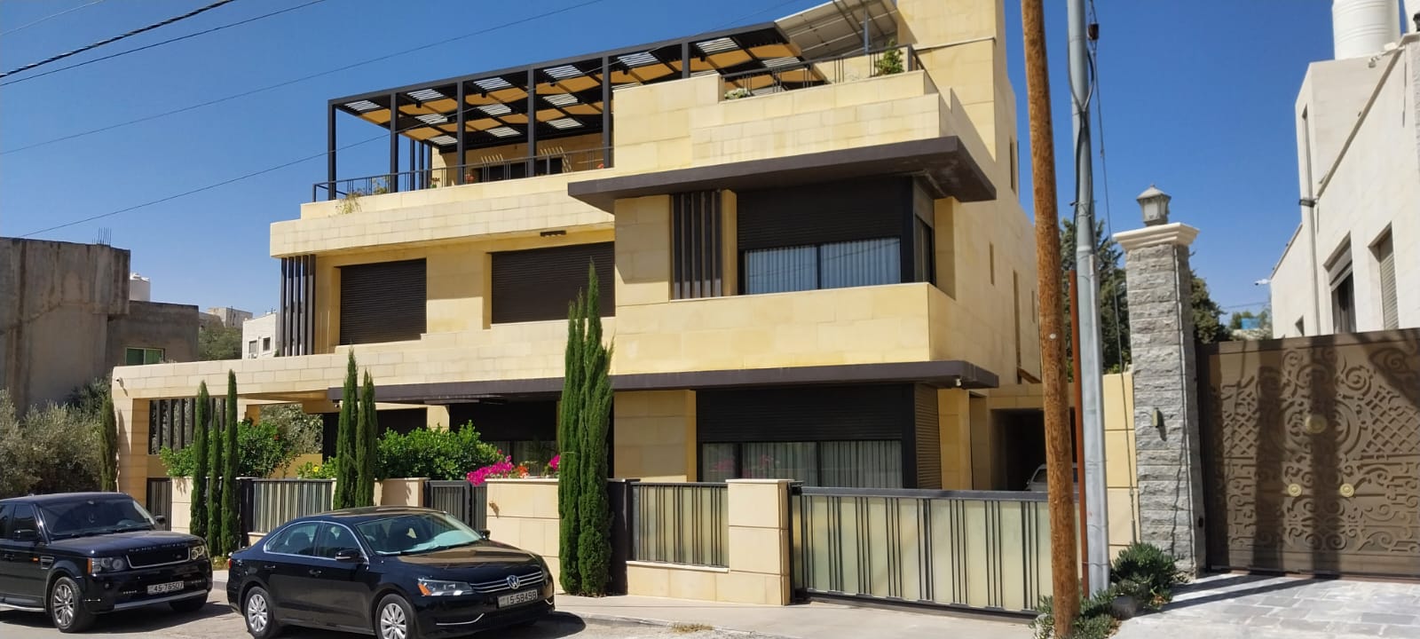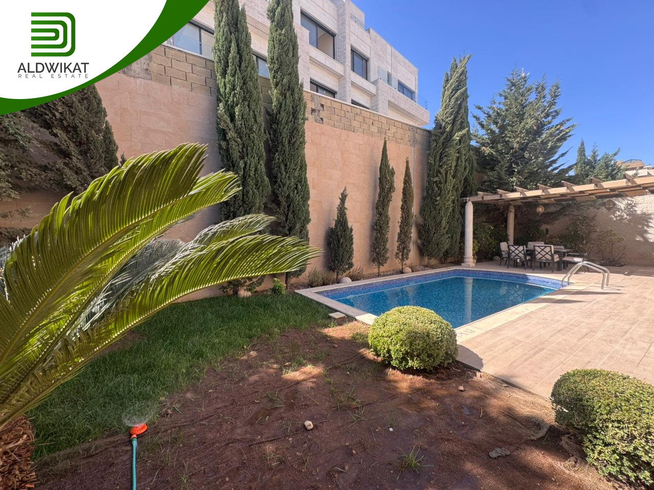 فيلا مستقلة للايجار في ديرغبار مساحة الارض 550م مساحة البناء 500م الحديقة 400م والترس 200م موقع مميز