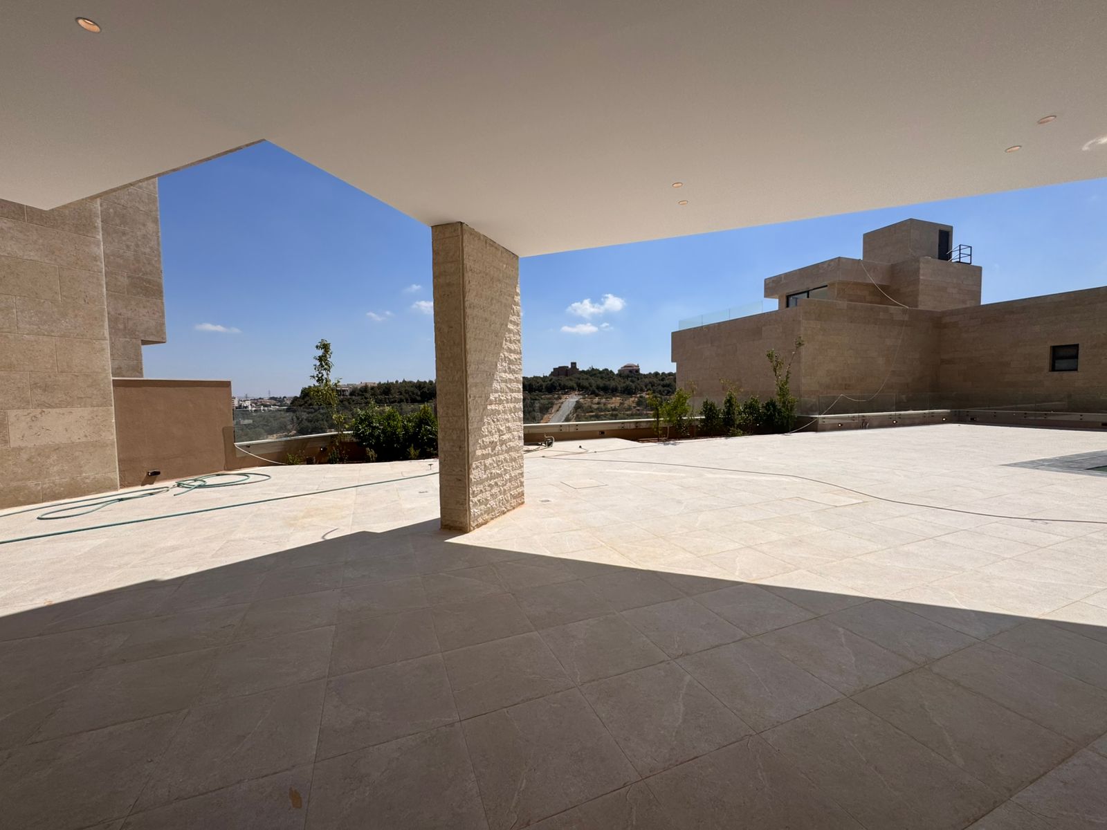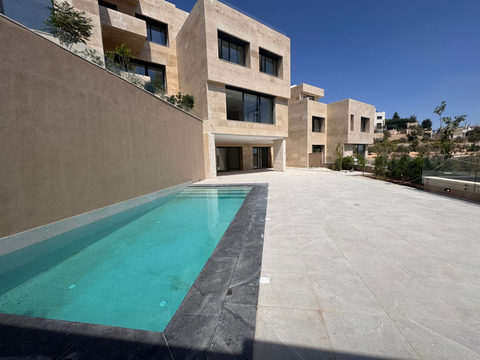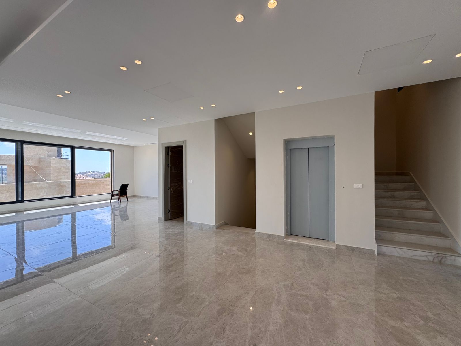 التشطيبات سوبر ديلوكس - نوع الارضيات ارخام + بورسلان - تدفئة غاز تحت البلاط - تكييف مركزي - حديقة - تدفئة مركزية - كراج خاص - اطلالة - بئر ماء - موقد - ديكورات - مسبح - مصعد