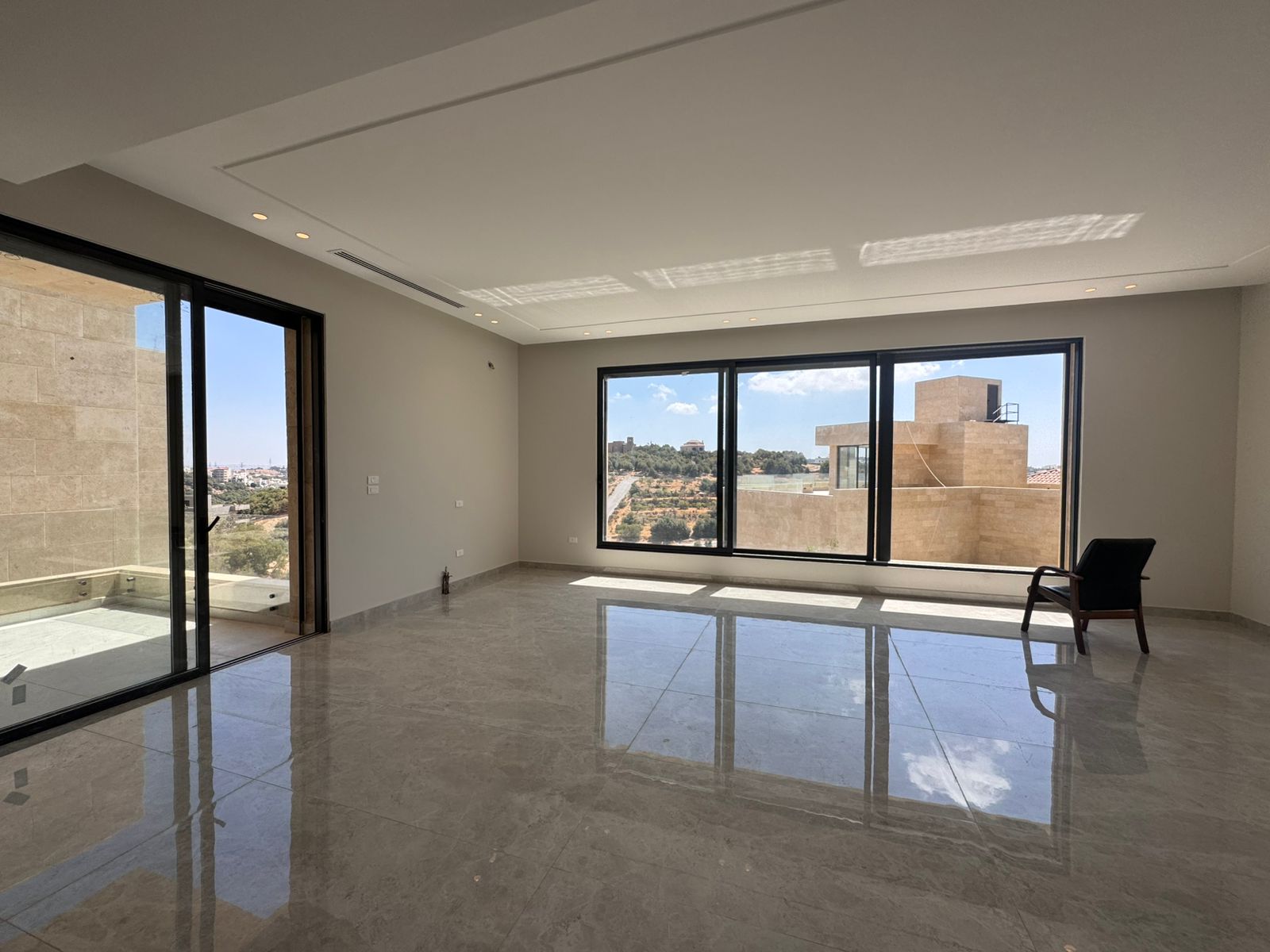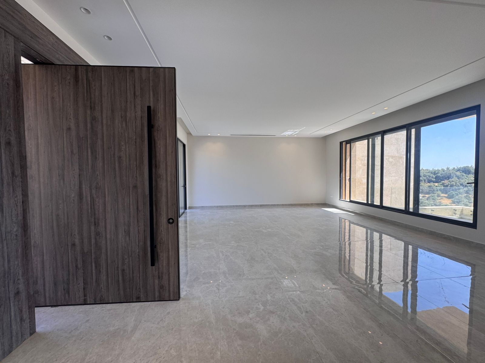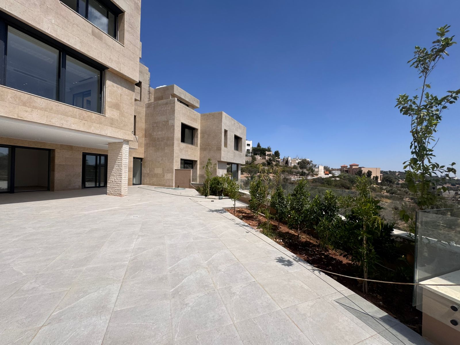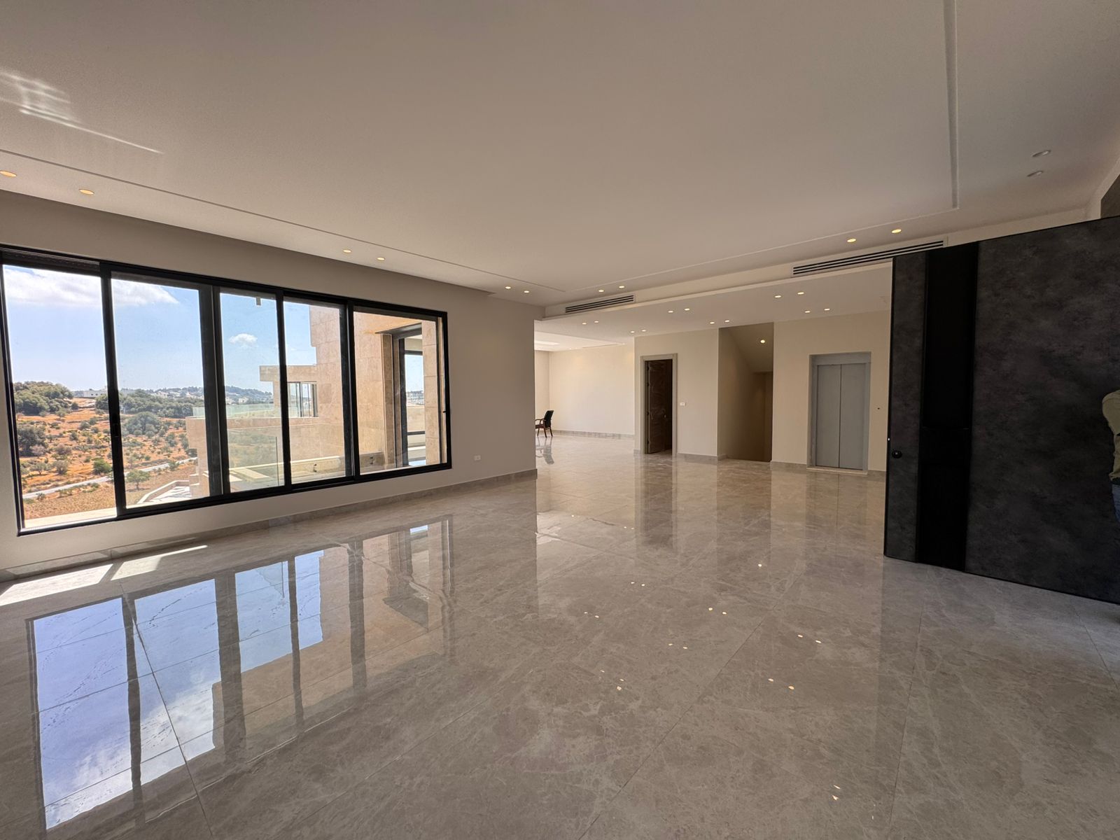 التشطيبات سوبر ديلوكس - نوع الارضيات ارخام + بورسلان - تدفئة غاز تحت البلاط - تكييف مركزي - حديقة - تدفئة مركزية - كراج خاص - اطلالة - بئر ماء - موقد - ديكورات - مسبح - مصعد