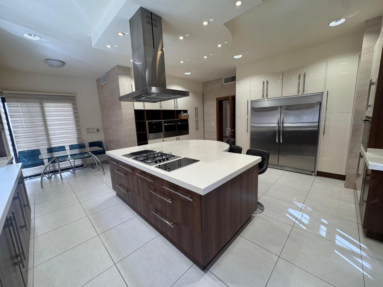 عدد غرف النوم 5 - عدد الماستر 4 - عدد الحمامات 6 - صالون 3 - معيشة 3 - مطبخ 3 مجهز بالكامل باحدث الاجهزه - غرفة خادمة - غرفة غسيل